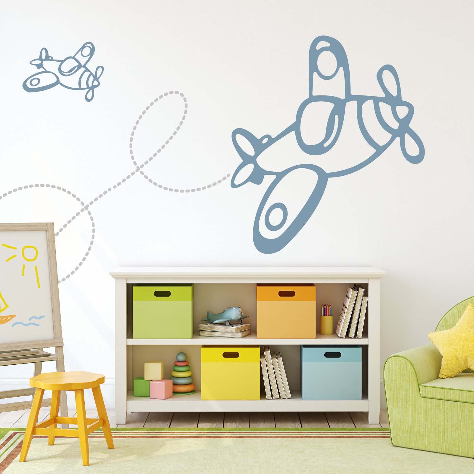 Vinilos infantiles con estilo sencillo y colores neutros, ideales para quienes buscan decoración limpia y creativa. Perfectos para habitaciones que crecen con ellos, sin perder la magia de la infancia.